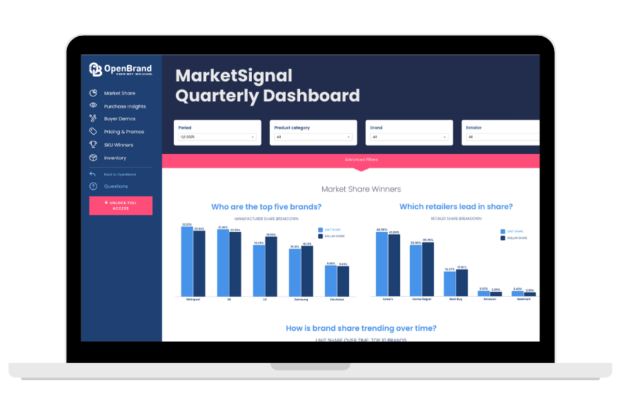 OpenBrand’s data is available to the public through MarketSignal, our quarterly overview dashboards, delivering market share, pricing, promotions, and purchase insights.