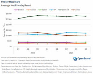 Our Business Printers: Printer Hardware 2025 Year-in-Review report recaps product launch activity, portfolio shifts, and pricing captured throughout 2025 with comparisons drawn to 2024. The report features data and insights from OpenBrand’s Business Printers and Personal & SOHO Printers categories, which feature products sold through the US ecommerce and brick-and-mortar channels.