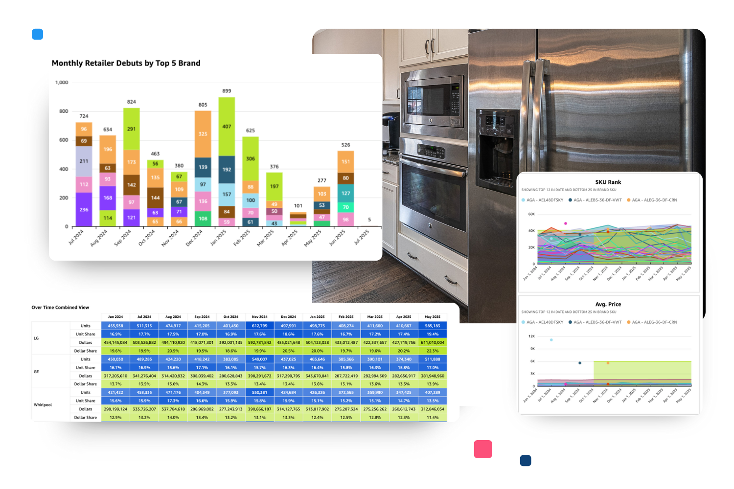 Keeping up with industry pricing shifts, changing demand, and retail complexity requires real-time visibility, right when you need it… Without chasing fragmented data and manually crawling sites. From daily SKU-level pricing and promotion data to market-wide share shifts and real-time visibility into stock status, our data and category expert analyst support keeps you easily informed, helping you save time and respond quickly to what’s going on in the major appliance market. No more 2 AM script fixes. We deliver yesterday’s price and stock deltas to your preferred BI tool within 24 hours.