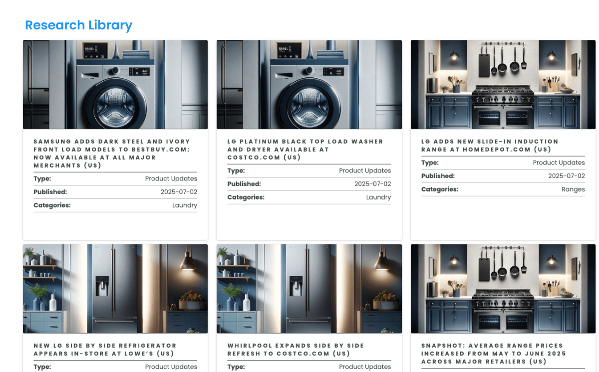 Access quarterly major appliance market data in MarketSignal — free, public, and subscription-free — including market share, pricing, promotions, and consumer insights.
