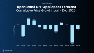 Interested in getting more granular 2026 price forecasts for appliances, consumer electronics, and home improvement? OpenBrand has monthly scenario-based forecasting for durables by category and sub-group. Contact us below to learn more or request a forecast preview.