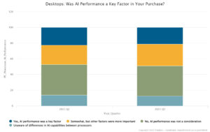 After a year and a half of Copilot+ PCs, and consumers remain at best lukewarm around the broader AI PC segment and processor differentiation. In Q3 2025, barely one-fifth of desktop purchasers in OpenBrand’s MindShare consumer tracking survey cited AI performance as a key factor in their purchase. Almost double (38%) did not consider AI performance at all. Perhaps more concerning, however, is that Q3’s results showed no improvement compared to Q2. This could rapidly change if local AI applications find their killer app, but in the meantime AI PC processors are not driving consumer purchases.