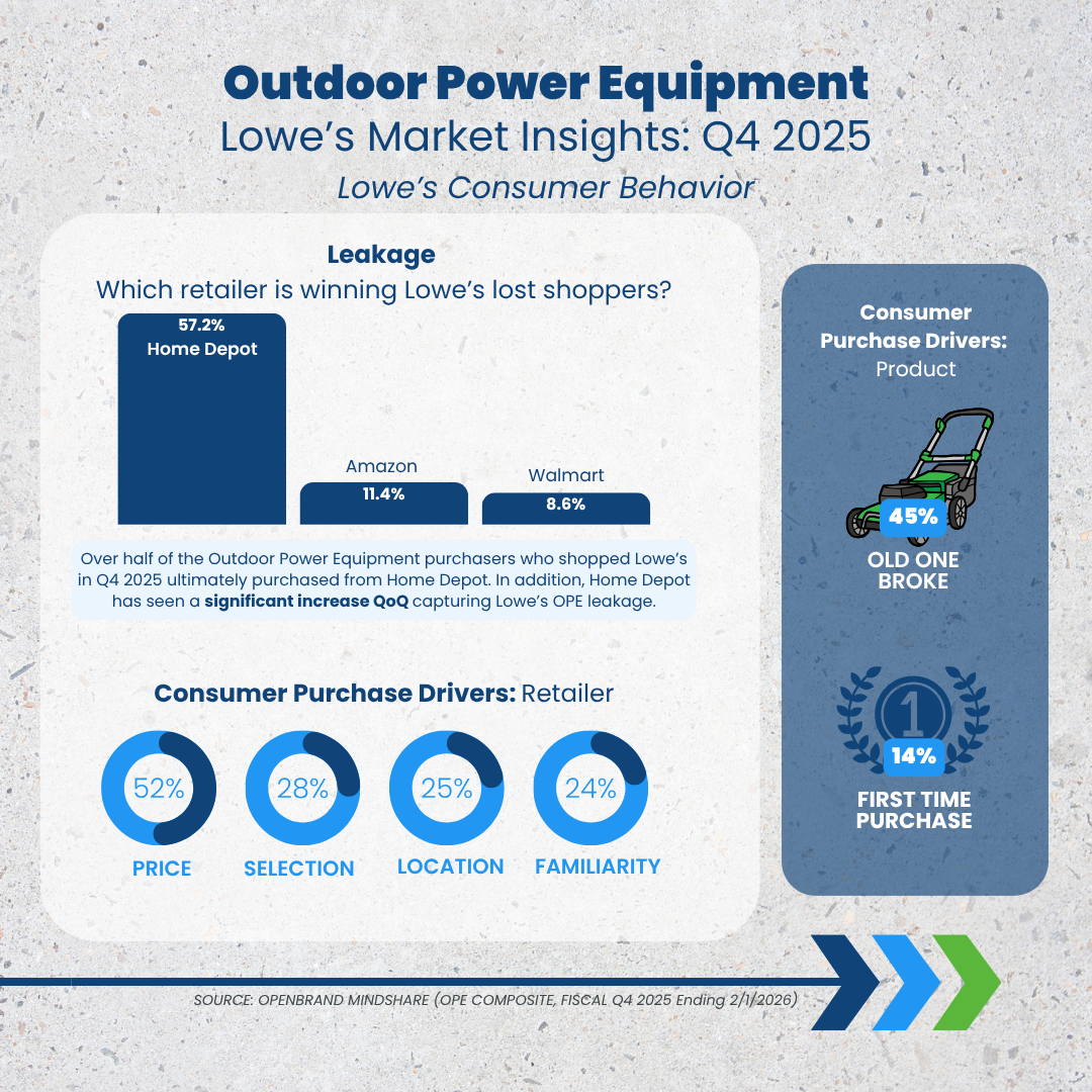 Lowe’s Q4 2025 results highlight a critical shift across appliances, outdoor power equipment (OPE), and power tools: demand remains strong, but conversion is the defining battleground. OpenBrand’s real-time market intelligence reveals clear priorities for brands and retailers looking to win share.