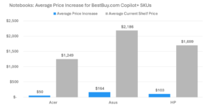 Asus has notably driven price adjustments in the emerging Copilot+ notebook segment, with around 23% of BestBuy.com’s Copilot+ SKUs seeing price hikes. ASUS accounted for all but four price increases. This is a combination of its particularly broad Copilot+ consumer and creator portfolio, coupled with the ongoing RTX 50 notebook launch including several AMD Ryzen AI 300 SKUs.