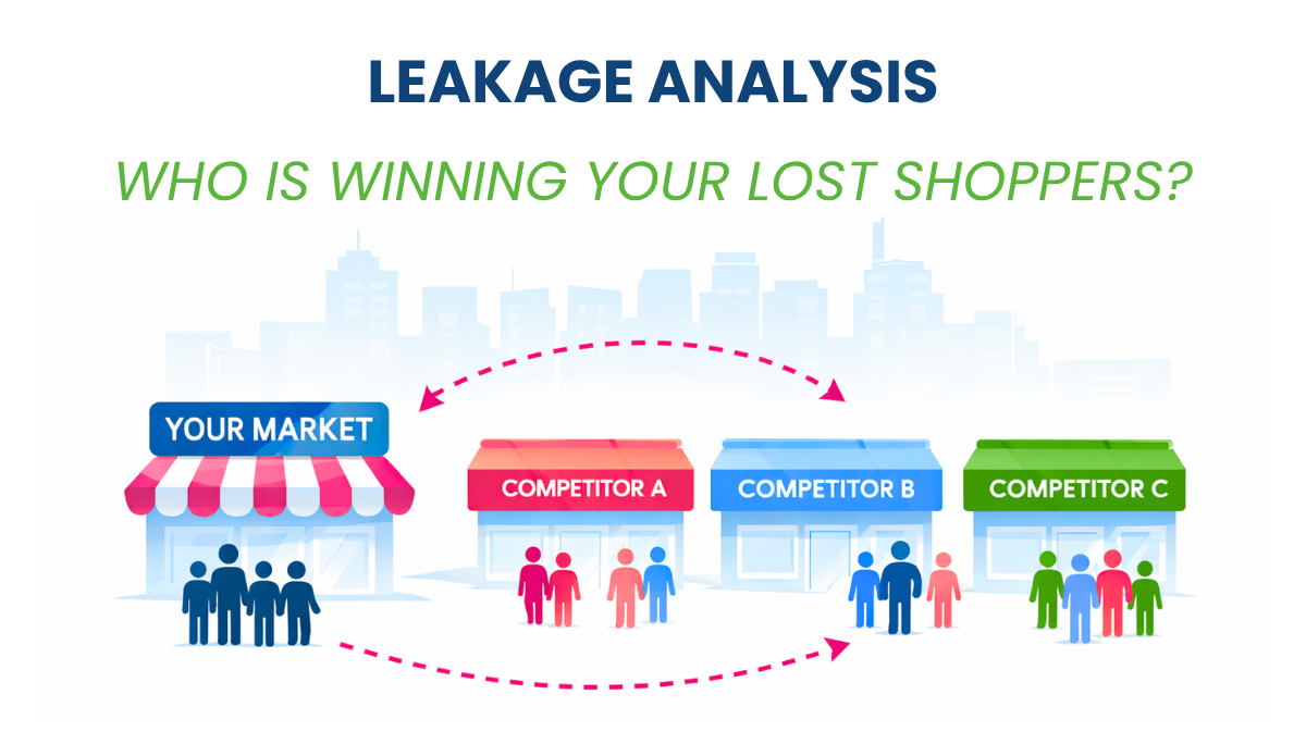 Retail leakage measures where shoppers go when they don’t choose you and which competitors win them instead.